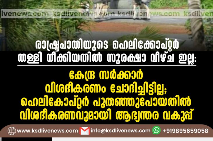 കേരളം രാഷ്ട്രപാതിയുടെ ഹെലിക്കോപ്റ്റർ തള്ളി നീക്കിയതിൽ സുരക്ഷാ വീഴ്ച ഇല്ല, കേന്ദ്ര സര്ക്കാർ വിശദീകരണം ചോദിച്ചിട്ടില്ല; ഹെലികോപ്റ്റർ പുതഞ്ഞുപോയതിൽ വിശദീകരണവുമായി ആഭ്യന്തര വകുപ്പ്October 23, 2025