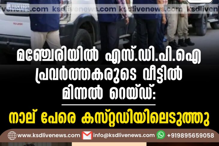 കേരളം മഞ്ചേരിയില് എസ്.ഡി.പി.ഐ പ്രവര്ത്തകരുടെ വീട്ടില് മിന്നല് റെയ്ഡ്: നാല് പേരെ കസ്റ്റഡിയിലെടുത്തുApril 4, 2025