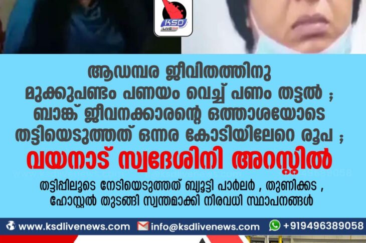 കേരളം ആഡമ്പര ജീവിതത്തിനു മുക്കുപണ്ടം പണയം വെച്ച് പണം തട്ടൽ ; ബാങ്ക് ജീവനക്കാരന്റെ ഒത്താശയോടെ തട്ടിയെടുത്തത് ഒന്നര കോടിയിലേറെ രൂപ ; വയനാട് സ്വദേശിനി അറസ്റ്റിൽDecember 6, 2020