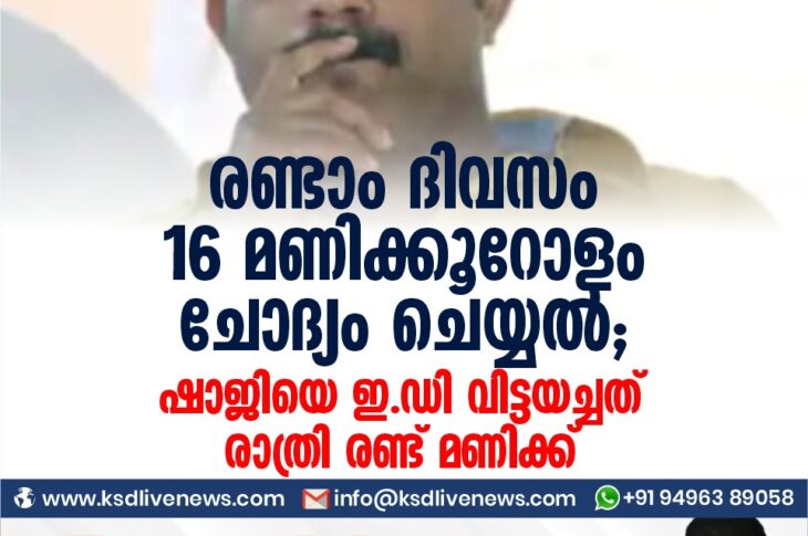 കേരളം രണ്ടാം ദിവസം 16 മണിക്കൂറോളം ചോദ്യം ചെയ്യല് ; ഷാജിയെ ഇ.ഡി വിട്ടയച്ചത് രാത്രി രണ്ട് മണിക്ക്November 12, 2020