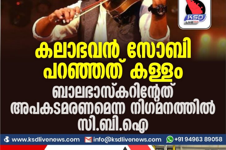 കേരളം കലാഭവന് സോബി പറഞ്ഞത് കള്ളം ; ബാലഭാസ്കറിന്റേത് അപകടമരണമെന്ന നിഗമനത്തില് സി.ബി.ഐNovember 12, 2020