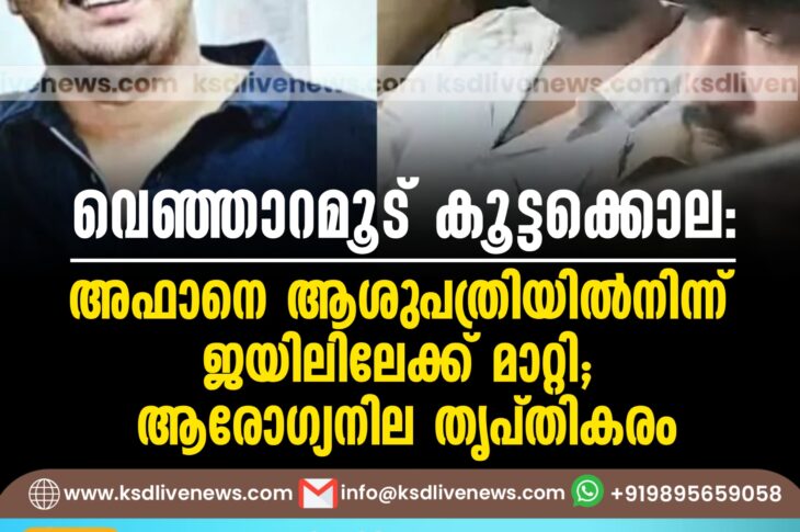 കേരളം വെഞ്ഞാറമൂട് കൂട്ടക്കൊല: അഫാനെ ആശുപത്രിയില്നിന്ന് ജയിലിലേക്ക് മാറ്റി; ആരോഗ്യനില തൃപ്തികരംMarch 4, 2025