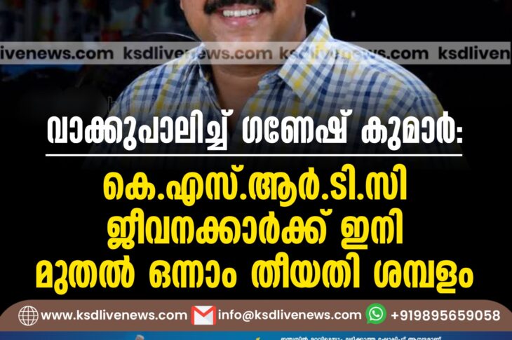 കേരളം വാക്കുപാലിച്ച് ഗണേഷ് കുമാര്; കെഎസ്ആര്ടിസി ജീവനക്കാര്ക്ക് ഇനി മുതല് ഒന്നാം തീയതി ശമ്പളംMarch 4, 2025