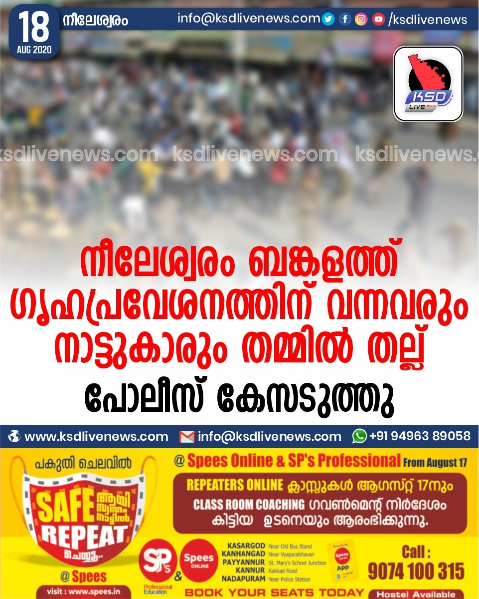 കേരളം നീലേശ്വരം ബങ്കളത്ത് ഗൃഹപ്രവേശനത്തിന് വന്നവരും നാട്ടുകാരും തമ്മിൽ തല്ല് പോലീസ് കേസടുത്തു.August 18, 2020
