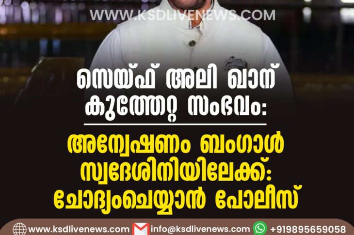 കേരളം സെയ്ഫ് അലി ഖാന് കുത്തേറ്റ സംഭവം: അന്വേഷണം ബംഗാള് സ്വദേശിനിയിലേക്ക്, ചോദ്യംചെയ്യാന് പോലീസ്January 27, 2025