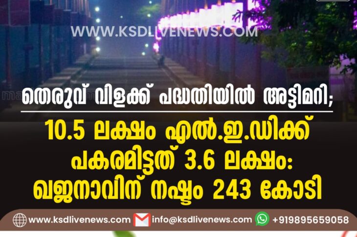 കേരളം തെരുവ് വിളക്ക് പദ്ധതിയിൽ അട്ടിമറി;10.5 ലക്ഷം LEDക്ക് പകരമിട്ടത് 3.6ലക്ഷം, ഖജനാവിന് നഷ്ടം 243 കോടിJanuary 28, 2025