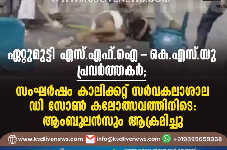 കേരളം ഏറ്റുമുട്ടി എസ്.എഫ്.ഐ-കെ.എസ്.യു പ്രവർത്തകർ; സംഘർഷം കാലിക്കറ്റ് സർവകലാശാലഡി സോൺ കലോത്സവത്തിനിടെ, ആംബുലൻസും ആക്രമിച്ചുJanuary 28, 2025