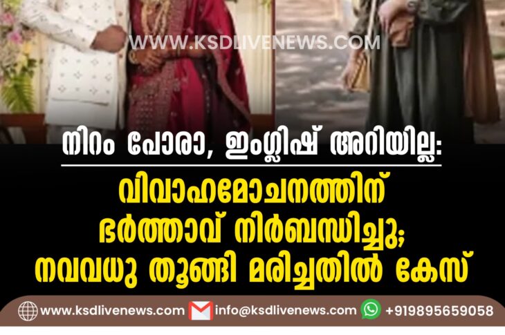 കേരളം നിറം പോരാ, ഇംഗ്ലിഷ് അറിയില്ല’; വിവാഹമോചനത്തിന് ഭർത്താവ് നിർബന്ധിച്ചു; നവവധു തൂങ്ങി മരിച്ചതിൽ കേസ്January 15, 2025