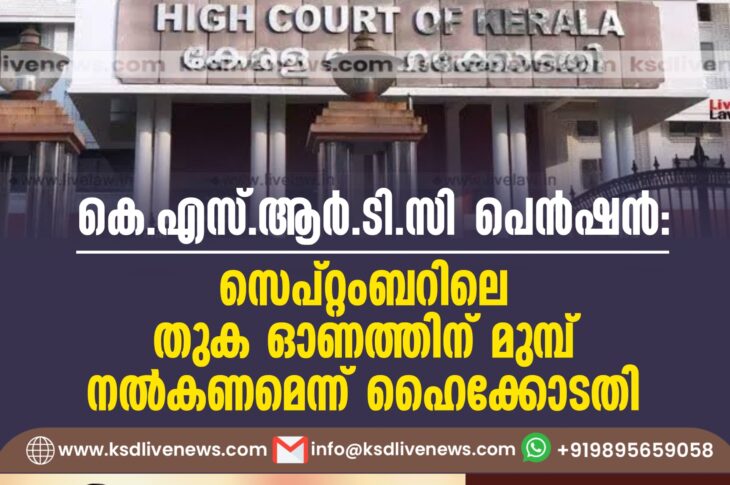 കേരളം കെ.എസ്.ആർ.ടി.സി. പെൻഷൻ; സെപ്റ്റംബറിലെ തുക ഓണത്തിന് മുമ്പ് നൽകണമെന്ന് ഹൈക്കോടതിSeptember 4, 2024