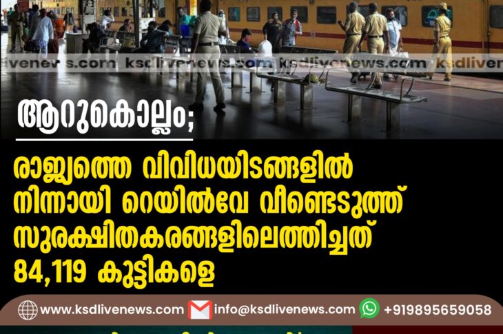 കേരളം ആറുകൊല്ലം; രാജ്യത്തെ വിവിധയിടങ്ങളിൽ നിന്നായി റെയിൽവേ വീണ്ടെടുത്ത് സുരക്ഷിതകരങ്ങളിലെത്തിച്ചത് 84,119 കുട്ടികളെ-August 29, 2024