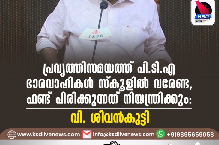 കേരളം പ്രവൃത്തിസമയത്ത് പി.ടി.എ ഭാരവാഹികൾ സ്കൂളിൽ വരേണ്ട, ഫണ്ട് പിരിക്കുന്നത് നിയന്ത്രിക്കും: വി. ശിവൻകുട്ടിJuly 3, 2024