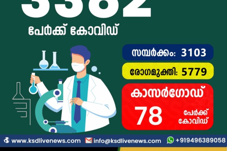 കാസർഗോഡ്കോവിഡ് 19 സംസ്ഥാനത്ത് ഇന്ന് 3382 പേർക്ക് കോവിഡ് സ്ഥിരീകരിച്ചു. സമ്പർക്കം വഴി 3103 പേർക്കും ; ആശ്വാസമായി 5779 പേർക്ക് രോഗ മുക്തിയും ; കാസർഗോഡ് ജില്ലയിൽ 78 പേർക്ക് പുതിയ കോവിഡ് കേസുകൾ ; മരണം 59November 29, 2021