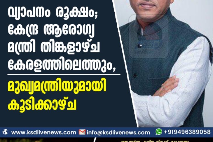 കോവിഡ് 19ദേശീയം കോവിഡ് വ്യാപനം രൂക്ഷം; കേന്ദ്ര ആരോഗ്യ മന്ത്രി തിങ്കളാഴ്ച കേരളത്തിലെത്തും, മുഖ്യമന്ത്രിയുമായി കൂടിക്കാഴ്ചAugust 14, 2021