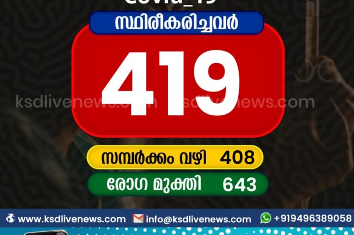 കേരളംകോവിഡ് 19 കാസർഗോഡ് ജില്ലയിൽ ഇന്ന് 419 പേർക്ക് കോവിഡ് സ്ഥിരീകരിച്ചു. സമ്പർക്കം വഴി 408 പേർക്കും. 643 പേർക്ക് രോഗമുക്തിAugust 15, 2021