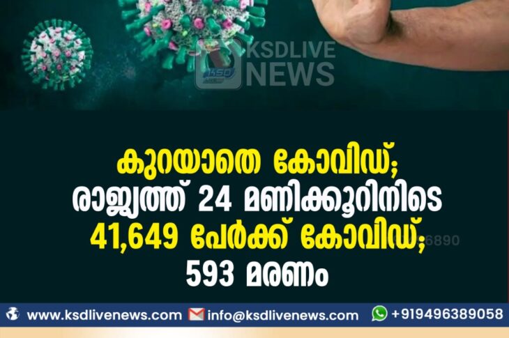 കോവിഡ് 19ദേശീയം കുറയാതെ കോവിഡ് ; രാജ്യത്ത് 24 മണിക്കൂറിനിടെ 41,649 പേര്ക്ക് കോവിഡ്; 593 മരണംJuly 31, 2021