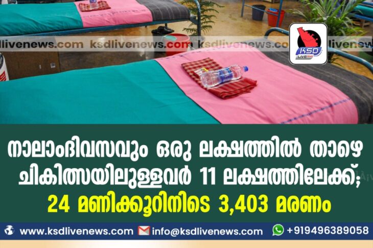കോവിഡ് 19ദേശീയം നാലാംദിവസവും ഒരു ലക്ഷത്തില് താഴെ, ചികിത്സയിലുള്ളവര് 11 ലക്ഷത്തിലേക്ക്; 24 മണിക്കൂറിനിടെ 3,403 മരണംJune 11, 2021