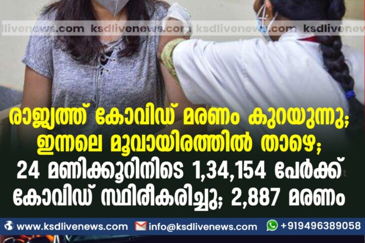 കോവിഡ് 19ദേശീയം രാജ്യത്ത് കോവിഡ് മരണം കുറയുന്നു; ഇന്നലെ മൂവായിരത്തില് താഴെ; 24 മണിക്കൂറിനിടെ 1,34,154 പേർക്ക് കോവിഡ് സ്ഥിരീകരിച്ചു ; 2,887 മരണംJune 3, 2021