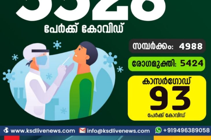 സംസ്ഥാനത്ത് ഇന്ന് 5528 പേർക്ക് കോവിഡ് സ്ഥിരീകരിച്ചു. സമ്പർക്കം വഴി 4988 പേർക്കും ; ആശ്വാസമായി 5424 പേർക്ക് രോഗ മുക്തിയും ; കാസർഗോഡ് ജില്ലയിൽ 93 പേർക്ക് പുതിയ കോവിഡ് കേസുകൾ ; മരണം 22