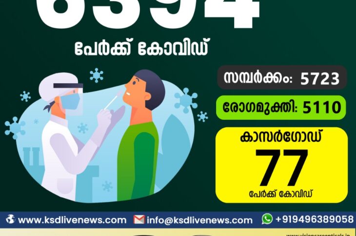 കേരളംകോവിഡ് 19 സംസ്ഥാനത്ത് ഇന്ന് 6394 പേർക്ക് കോവിഡ് സ്ഥിരീകരിച്ചു. സമ്പർക്കം വഴി 5723 പേർക്കും ; ആശ്വാസമായി 5110 പേർക്ക് രോഗ മുക്തിയും ; കാസർഗോഡ് ജില്ലയിൽ 77 പേർക്ക് പുതിയ കോവിഡ് കേസുകൾ ; മരണം 25January 6, 2021