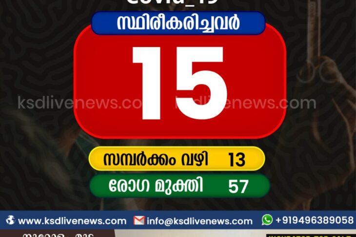 കാസർഗോഡ്കോവിഡ് 19 കാസർഗോഡ് ജില്ലയിൽ ഇന്ന് 15 പേർക്ക് കോവിഡ് സ്ഥിരീകരിച്ചു. സമ്പർക്കം വഴി 13 പേർക്കും. 57 പേർക്ക് രോഗമുക്തിDecember 14, 2020