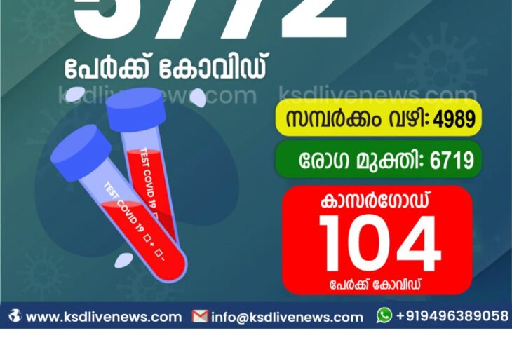 കേരളംകോവിഡ് 19 സംസ്ഥാനത്ത് ഇന്ന് 5772 പേർക്ക് കോവിഡ് സ്ഥിരീകരിച്ചു. സമ്പർക്കം വഴി 4989 പേർക്കും ; ആശ്വാസമായി 6719 പേർക്ക് രോഗ മുക്തിയും ; കാസർഗോഡ് ജില്ലയിൽ 104 പേർക്ക് പുതിയ കോവിഡ് കേസുകൾ ; മരണം 25November 21, 2020