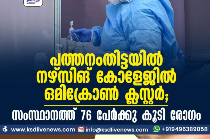 കേരളംകോവിഡ് 19 പത്തനംതിട്ടയിൽ നഴ്സിങ് കോളേജില് ഒമിക്രോണ് ക്ലസ്റ്റര്, സംസ്ഥാനത്ത് 76 പേര്ക്കു കൂടി രോഗംJanuary 12, 2022