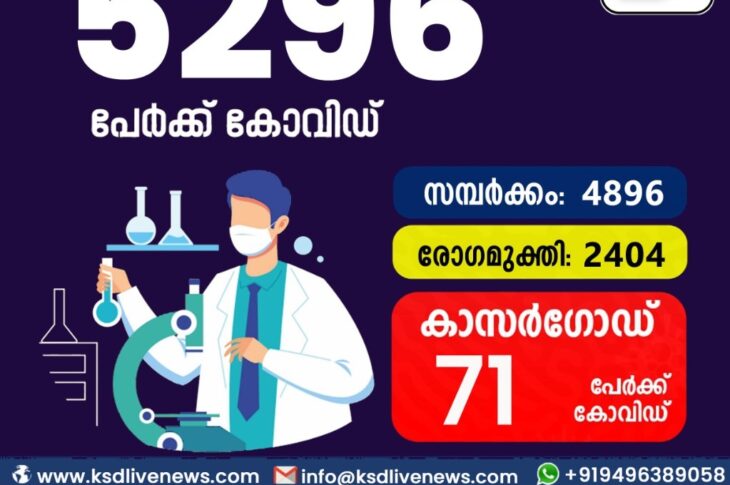 കേരളംകോവിഡ് 19 സംസ്ഥാനത്ത് ഇന്ന് 5296 പേർക്ക് കോവിഡ് സ്ഥിരീകരിച്ചു. സമ്പർക്കം വഴി 4896 പേർക്കും ; ആശ്വാസമായി 2404 പേർക്ക് രോഗ മുക്തിയും ; കാസർഗോഡ് ജില്ലയിൽ 71 പേർക്ക് പുതിയ കോവിഡ് കേസുകൾ ; മരണം 35January 7, 2022
