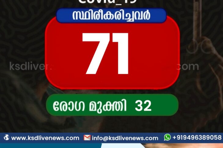 കാസർഗോഡ്കോവിഡ് 19 കാസർഗോഡ് ജില്ലയിൽ ഇന്ന് 71 പേർക്ക് കോവിഡ് സ്ഥിരീകരിച്ചു. 32 പേർക്ക് രോഗമുക്തിJanuary 7, 2022