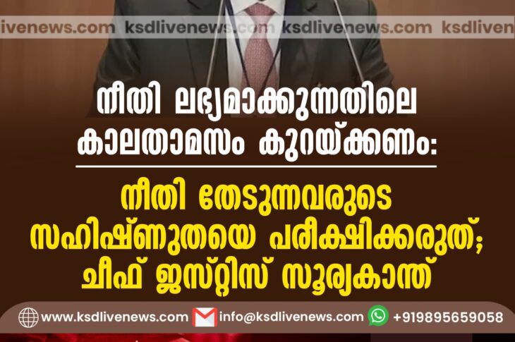 ദേശീയം നീതി ലഭ്യമാക്കുന്നതിലെ കാലതാമസം കുറയ്ക്കണം: നീതി തേടുന്നവരുടെ സഹിഷ്ണുതയെ പരീക്ഷിക്കരുത്; ചീഫ് ജസ്റ്റിസ് സൂര്യകാന്ത്December 15, 2025