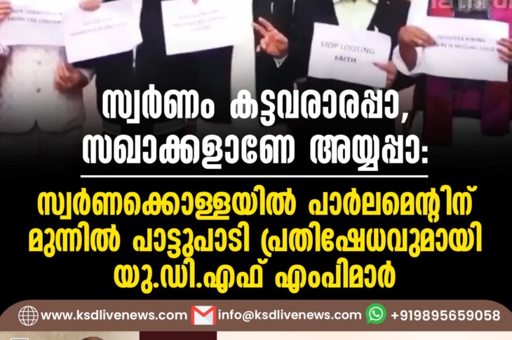 ദേശീയം സ്വർണം കട്ടവരാരപ്പാ, സഖാക്കളാണേ അയ്യപ്പാ: സ്വർണക്കൊള്ളയിൽ പാർലമെന്റിന് മുന്നിൽ പാട്ടുപാടി പ്രതിഷേധവുമായി യു.ഡി.എഫ് എം.പിമാർDecember 15, 2025