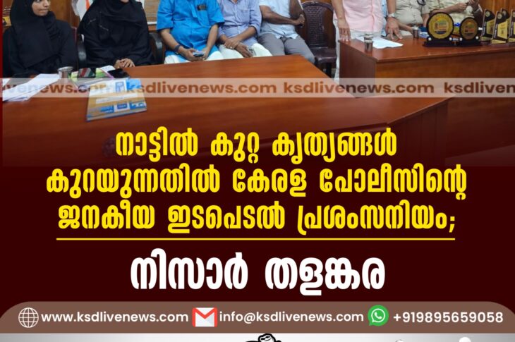 പ്രാദേശികം നാട്ടിൽ കുറ്റ കൃത്യങ്ങൾ കുറയുന്നതിൽ കേരള പോലീസിന്റെ ജനകീയ ഇടപെടൽ പ്രശംസനിയം ; നിസാർ തളങ്കരAugust 31, 2024