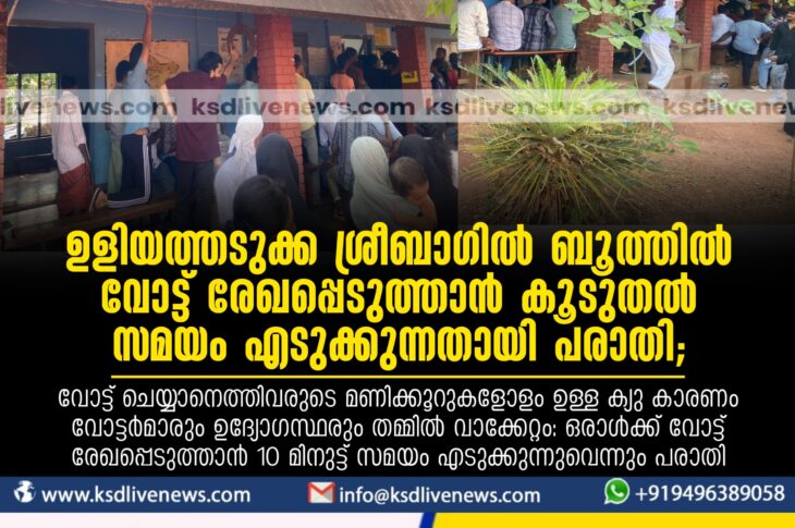 പ്രാദേശികം ഉളിയത്തടുക്ക ശ്രീബാഗിൽ ബൂത്തിൽ വോട്ട് രേഖപ്പെടുത്താൻ കൂടുതൽ സമയം എടുക്കുന്നതായി പരാതി; വോട്ട് ചെയ്യാനെത്തിവരുടെ മണിക്കൂറുകളോളം ഉള്ള ക്യു കാരണം വോട്ടർമാരും ഉദ്യോഗസ്ഥരും തമ്മിൽ വാക്കേറ്റം ; ഒരാൾക്ക് വോട്ട് രേഖപ്പെടുത്താൻ 10 മിനുട്ട് സമയം എടുക്കുന്നുവെന്നും പരാതിApril 26, 2024
