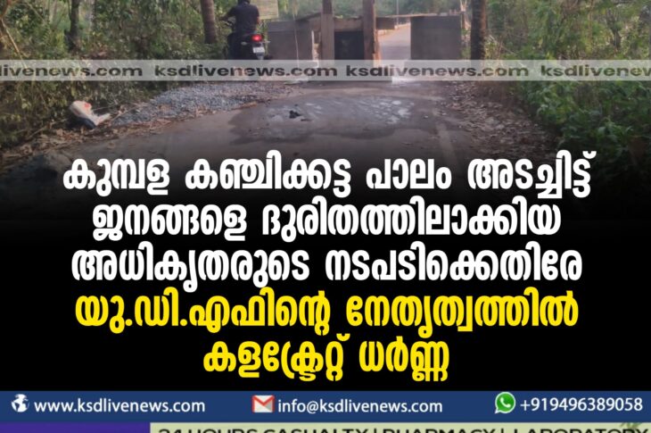പ്രാദേശികം കുമ്പള കഞ്ചിക്കട്ട പാലം അടച്ചിട്ട് ജനങ്ങളെ ദുരിതത്തിലാക്കിയ അധികൃതരുടെ നടപടിക്കെതിരേ യു.ഡി.എഫിന്റെ നേതൃത്വത്തിൽ കളക്ട്രേറ്റ് ധർണ്ണMay 1, 2024