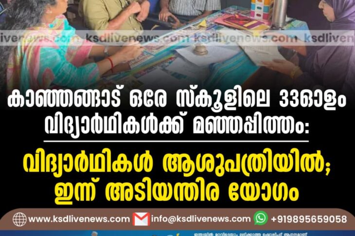പ്രാദേശികം കാഞ്ഞങ്ങാട് ഒരേ സ്കൂളിലെ 33ഓളം വിദ്യാർഥികൾക്ക് മഞ്ഞപ്പിത്തം: വിദ്യാർഥികൾ ആശുപത്രിയിൽ; ഇന്ന് അടിയന്തിര യോഗംOctober 29, 2025