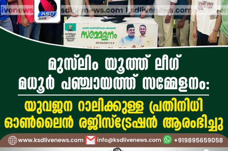 പ്രാദേശികം മുസ്ലിം യൂത്ത് ലീഗ് മധൂർ പഞ്ചായത്ത് സമ്മേളനം: യുവജന റാലിക്കുള്ള പ്രതിനിധി ഓൺലൈൻ രജിസ്ട്രേഷൻ ആരംഭിച്ചുOctober 30, 2025