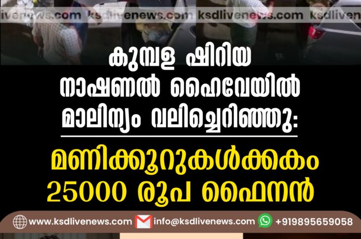 പ്രാദേശികം കുമ്പള ഷിറിയ നാഷണൽ ഹൈവേയിൽ മാലിന്യം വലിച്ചെറിഞ്ഞു: മണിക്കൂറുകള്ക്കകം 25000 രൂപ ഫൈനൻOctober 23, 2025