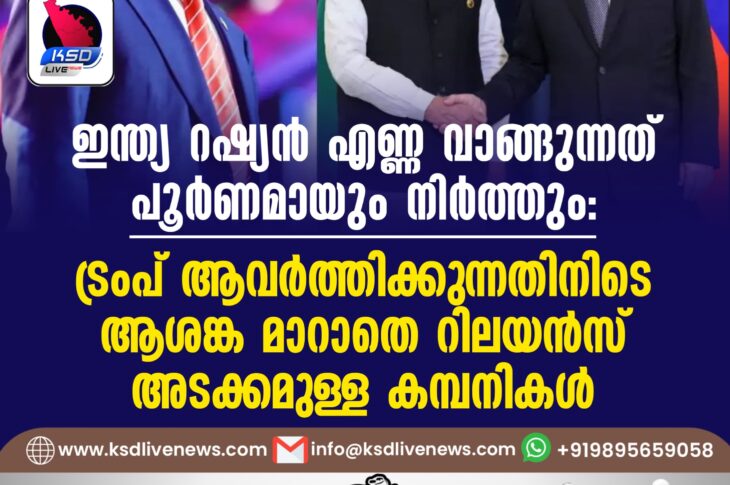 പ്രാദേശികം ഇന്ത്യ റഷ്യൻ എണ്ണ വാങ്ങുന്നത് പൂര്ണമായും നിര്ത്തും: ട്രംപ് ആവര്ത്തിക്കുന്നതിനിടെ ആശങ്ക മാറാതെ റിലയൻസ് അടക്കമുള്ള കമ്പനികള്October 27, 2025