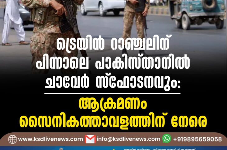 വിദേശം ട്രെയിൻ റാഞ്ചലിന് പിന്നാലെ പാകിസ്താനിൽ ചാവേർ സ്ഫോടനവും; ആക്രമണം സൈനികത്താവളത്തിന് നേരെMarch 13, 2025