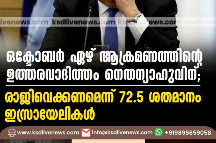 വിദേശം ഒക്ടോബർ ഏഴ് ആക്രമണത്തിന്റെ ഉത്തരവാദിത്തം നെതന്യാഹുവിന്; രാജിവെക്കണമെന്ന് 72.5 ശതമാനം ഇസ്രായേലികൾMarch 10, 2025