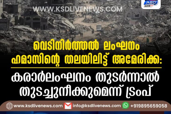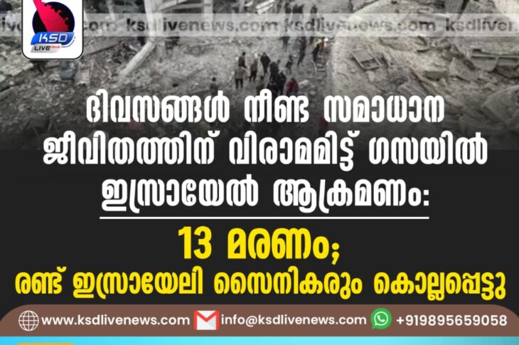 വിദേശം ദിവസങ്ങള് നീണ്ട സമാധാന ജീവിതത്തിന് വിരാമമിട്ട് ഗസയില് ഇസ്റാഈല് ആക്രമണം; 13 മരണം ; രണ്ട് ഇസ്റാഈലി സൈനികരും കൊല്ലപ്പെട്ടുOctober 20, 2025