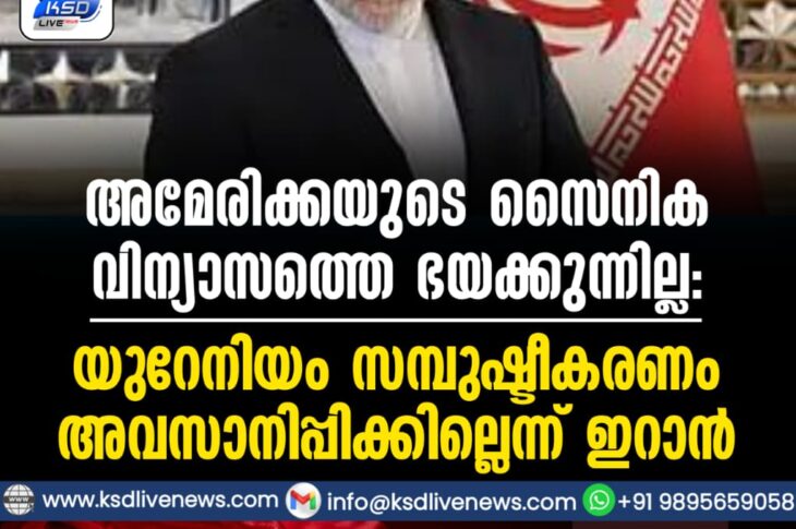 വിദേശം അമേരിക്കയുടെ സൈനിക വിന്യാസത്തെ ഭയക്കുന്നില്ല: യുറേനിയം സമ്പുഷ്ടീകരണം അവസാനിപ്പിക്കില്ലെന്ന് ഇറാന്February 12, 2026