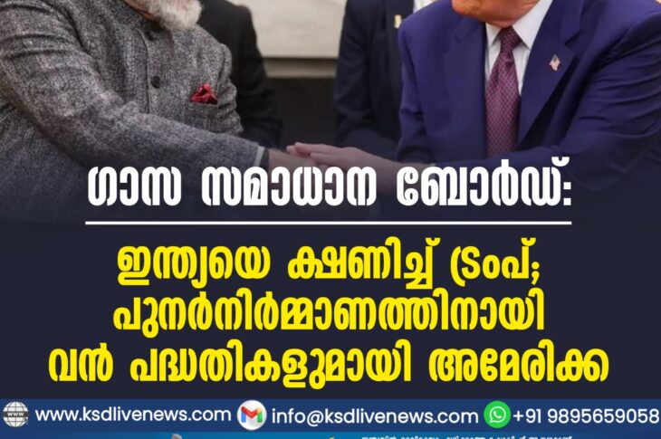 വിദേശം ഗാസ സമാധാന ബോർഡ്: ഇന്ത്യയെ ക്ഷണിച്ച് ട്രംപ്; പുനർനിർമ്മാണത്തിനായി വൻ പദ്ധതികളുമായി അമേരിക്കJanuary 19, 2026