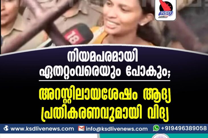 കേരളംവിദ്യാഭ്യാസം നിയമപരമായി ഏതറ്റംവരെയും പോകും; അറസ്റ്റിലായശേഷം ആദ്യ പ്രതികരണവുമായി വിദ്യJune 22, 2023