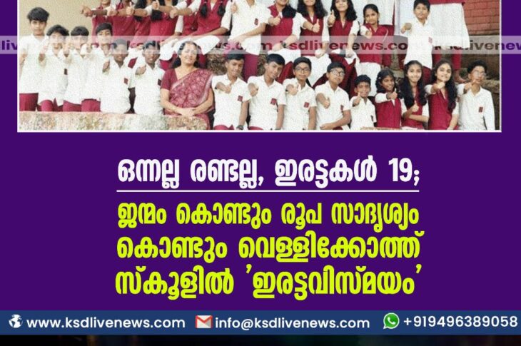 കാസർഗോഡ്വിദ്യാഭ്യാസം ഒന്നല്ല രണ്ടല്ല, ഇരട്ടകള് 19; ജന്മം കൊണ്ടും രൂപ സാദൃശ്യം കൊണ്ടും വെള്ളിക്കോത്ത് സ്കൂളില് ‘ഇരട്ടവിസ്മയം’June 26, 2023