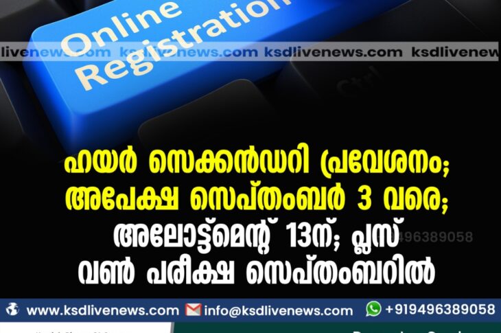 കേരളംവിദ്യാഭ്യാസം ഹയർ സെക്കൻഡറി പ്രവേശനം : അപേക്ഷ സെപ്തംബർ. 3 വരെ; അലോട്ട്മെന്റ് 13ന് ; പ്ലസ് വൺ പരീക്ഷ സെപ്തംബറിൽAugust 19, 2021
