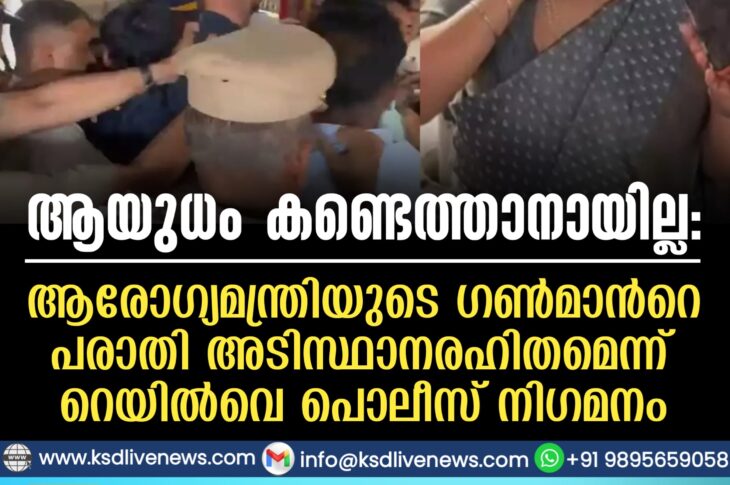 കണ്ണൂർ ആയുധം കണ്ടെത്താനായില്ല: ആരോഗ്യമന്ത്രിയുടെ ഗണ്മാന്റെ പരാതി അടിസ്ഥാനരഹിതമെന്ന് റെയിൽവെ പൊലീസ് നിഗമനംMarch 6, 2026