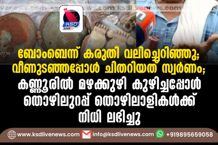 കണ്ണൂർ ബോംബെന്ന് കരുതി വലിച്ചെറിഞ്ഞു; വീണുടഞ്ഞപ്പോള് ചിതറിയത് സ്വര്ണം; കണ്ണൂരിൽ മഴക്കുഴി കുഴിച്ചപ്പോൾ തൊഴിലുറപ്പ് തൊഴിലാളികൾക്ക് നിധി ലഭിച്ചുJuly 13, 2024