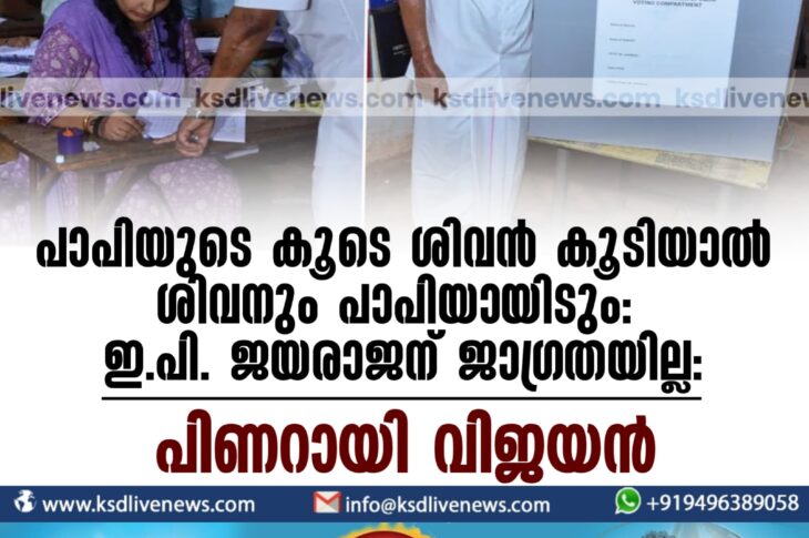 കണ്ണൂർ പാപിയുടെ കൂടെ ശിവന് കൂടിയാല് ശിവനും പാപിയായിടും: ഇ.പി. ജയരാജന് ജാഗ്രതയില്ല; പിണറായി വിജയന്April 26, 2024