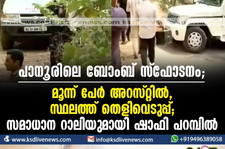 കണ്ണൂർ പാനൂരിലെ ബോംബ് സ്ഫോടനം; മൂന്ന് പേർ അറസ്റ്റിൽ, സ്ഥലത്ത് തെളിവെടുപ്പ്; സമാധാന റാലിയുമായി ഷാഫി പറമ്പിൽApril 6, 2024