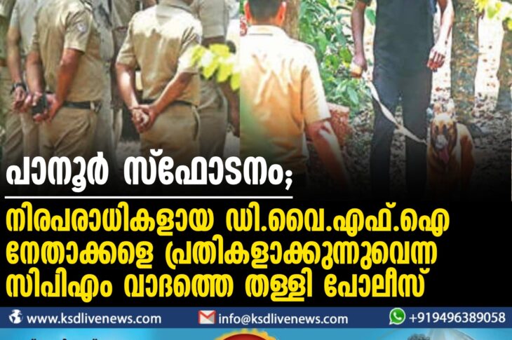 കണ്ണൂർ പാനൂർ സ്ഫോടനം; നിരപരാധികളായ ഡി.വൈ.എഫ്.ഐ നേതാക്കളെ പ്രതികളാക്കുന്നുവെന്ന സിപിഎം വാദത്തെ തള്ളി പോലീസ്April 9, 2024